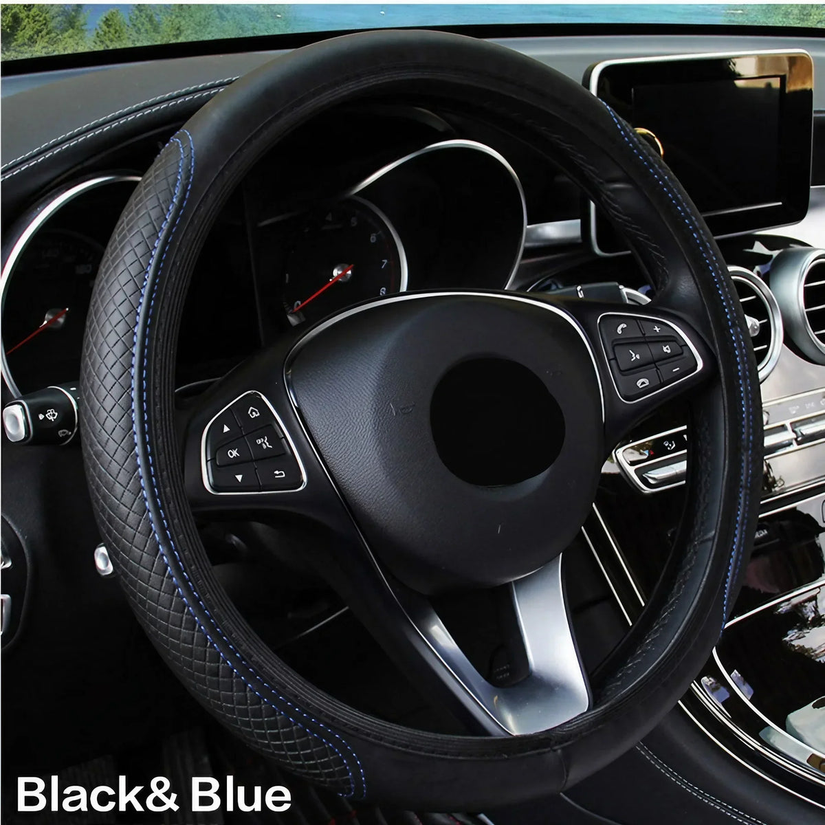 Breathable PU Leather Anti-Slip Universal Car Steering Wheel Cover, Interior Decoration Accessories