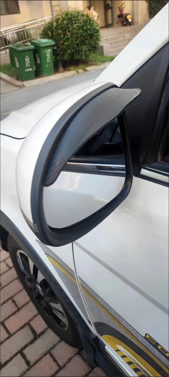 Features: 1. Help to prevent rain, so that you have a clearer rear view and a safer driving experience; 2. In sunny weather, can reduce the dust attached to the mirror. 3. There is tape on the back, which is easy to install on both sides of car side rearview mirrors. 4. Flexible and foldable, fit most models.